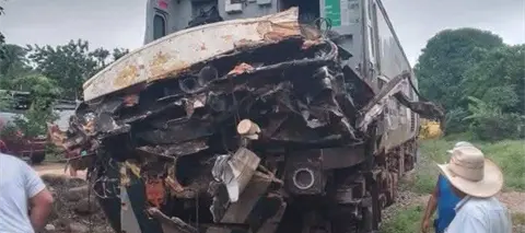 Pipa es embestida por Tren Interoceánico cuando intentaba ganarle el paso en Chiapas