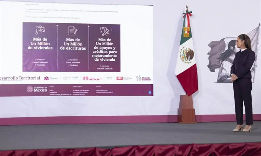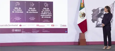 La presidenta Claudia Sheinbaum presumió que, mediante el programa de "Vivienda para el Bienestar" se beneficiarán cerca de ocho millones de familias a través del Infonavit, FOVISSSTE y Conavi.