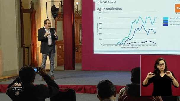 “También se presenta la gráfica de los casos recuperados, que al total de una manera acumulada, tenemos actualmente 615 mil 680, que son los estimados y recuperados de la infección. Y por otro lado, también se ve en la gráfica el descenso que ha sido continuo, prácticamente desde la semana 25 al 27 que habido un descenso continuo de las muertes estimadas y confirmadas, por lo tanto también asociadas a infección por el virus Sars Cov 2”, declaró.