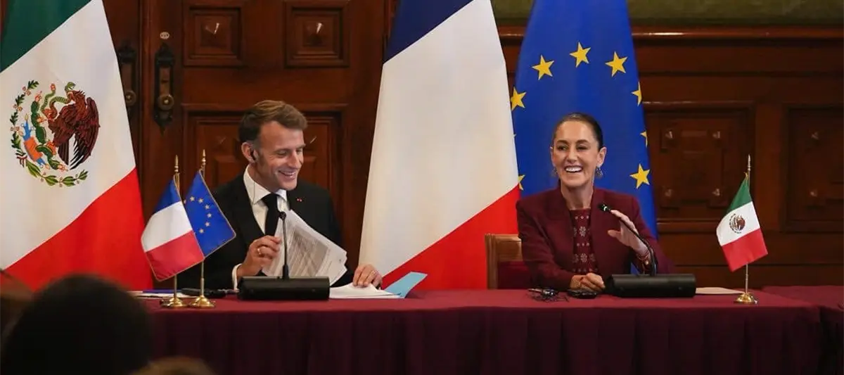 La presidenta, Claudia Sheinbaum, recibió en Palacio Nacional al presidente de Francia, Emmanuel Macron, con quien sostuvo un encuentro privado y posteriormente una reunión con empresarios de ambos países, para impulsar inversiones y cooperación estratégica.
