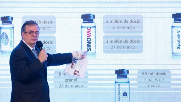 El canciller destacó que este martes arribó a México un nuevo lote con 667 mil 827 dosis de Pfizer, y que el próximo cargamento llegará el 23 de marzo y será de 658 mil 125 biológicos, además de que a partir de abril, la farmacéutica duplicará las entregas por semana.