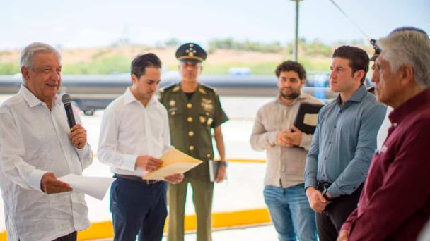 “En compañía del presidente Andrés Manuel López Obrador visitamos la Presa El Cuchillo para ver los detalles de la construcción del segundo acueducto, un proyecto que por falta de recursos y voluntad política tenía parado 26 años. Hoy gracias al trabajo en equipo y la voluntad de la Federación este proyecto será una realidad”, publicó Samuel García.