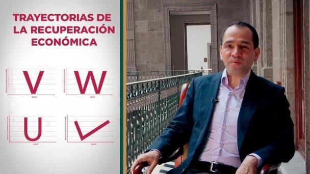 El secretario de Hacienda, Arturo Herrera, aseguró que la recuperación económica para el país, se espera en una forma de V, pero asimétrica, lo que se podría calificar como una palomita, es decir, se marcará una caída veloz, pero una recuperación que irá en aumento escalonado.