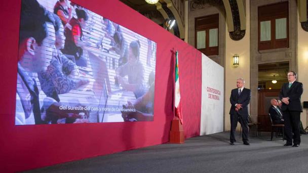 El canciller presumió los empleos otorgados a migrantes con cooperación económica mexicana en El Salvador, Guatemala y Honduras.