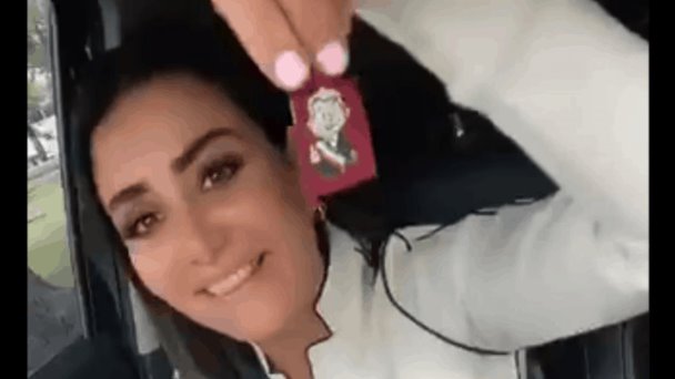 La legisladora mostró el regalo que por un lado trae la caricatura del presidente mexicano, y por el otro lado el nombre de Mario Delgado.