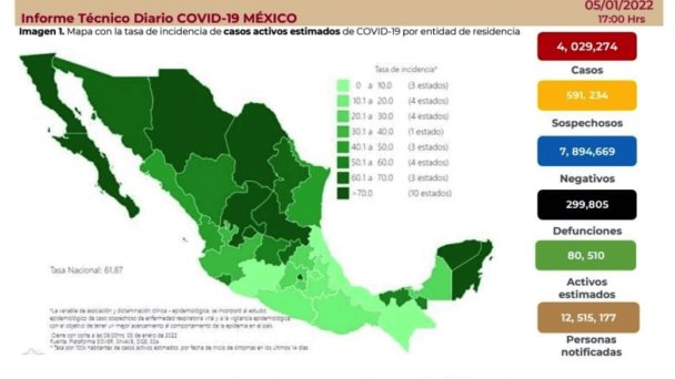 La Secretaría también detalló que hay 74 mil 392 casos activos en todo el país y 591 mil 234 sospechosos.