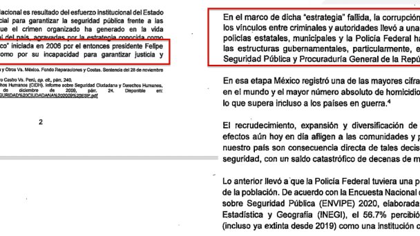 “El recrudecimiento, expansión y diversificación de la violencia criminal, cuyos efectos aún hoy en día afligen a las comunidades y poblaciones de gran parte de nuestro país son consecuencia directa de tales decisiones políticas en materia de seguridad, con un saldo catastrófico de decenas de miles de víctimas”.