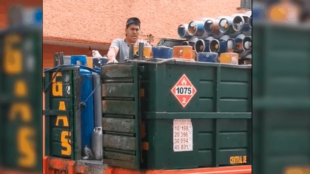 Repartidor promociona el gas al ritmo de villancicos navideños en la CDMX