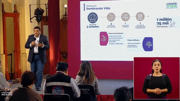 “Ahorita estamos en el segundo ciclo, produciendo 150 millones de plantas en viveros comunitarios en 5 mil 714 viveros comunitarios. El 23 por ciento es en viveros militares, ya está la planta, ya se alcanzó la meta, tenemos 215 millones de plantas, ya la estamos retirando. El 12 por ciento en viveros comerciales, ya está la meta cumplida, y el próximo mes empezamos a retirar la planta”, indicó.