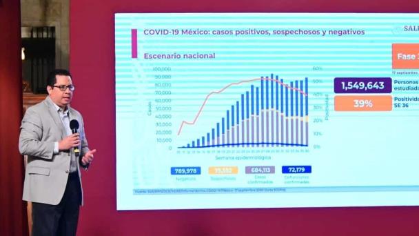 El funcionario dio a conocer que se han estudiado a un millón 549 mil 643 personas; además de que se ha registrado un 39 por ciento de positividad en la semana 36, que es la que cerrará el próximo sábado.