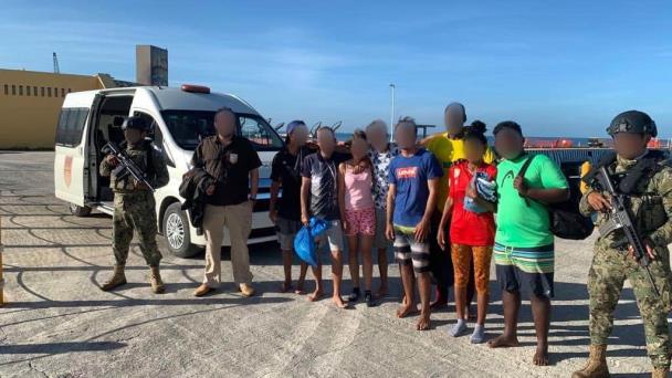 Una patrulla oceánica de la Semar trasladó a las dos mujeres y a los seis hombres cubanos a Puerto Progreso, y tras no encontrar algún síntoma de alguna enfermedad o deshidratación, fueron entregados al personal del Instituto Nacional de Migración (INM).