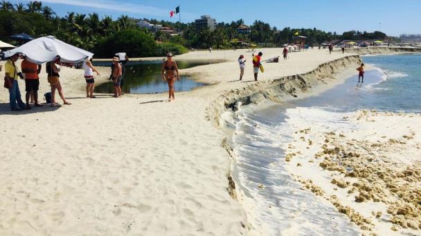 Se da deslizamiento de arena en Playa Marinero en Puerto Escondido, Oaxaca