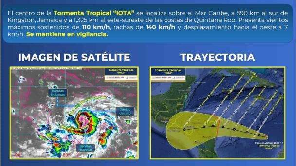 La Comisión Nacional del Agua (CONAGUA) informó que la tormenta tropical “Iota”, se intensificó en su tránsito sobre el Mar Caribe con dirección a Centroamérica, con vientos de más de 95 kilómetros por hora.