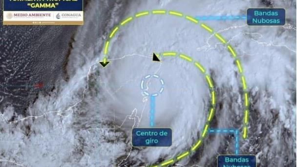 El Instituto Nacional de Protección Civil informó que el centro de la tormenta tropical “Gamma” se localiza frente a las costas de Yucatán.