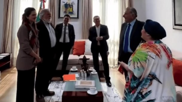 López Hernández difundió en video donde se puede ver a los funcionarios bolivianos dialogando con el funcionario mexicano, y el momento en que recibe de manos de Nela Prada un ejemplar del libro “Un modelo económico justo y exitoso”, escrito por el presidente de aquel país, Luis Alberto Arce Catacora.