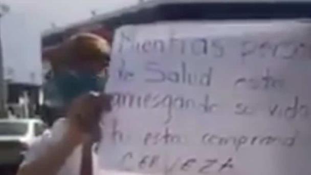 Se solidariza “El Bronco” con enfermera que protesta contra automovilistas que buscan comprar cerveza