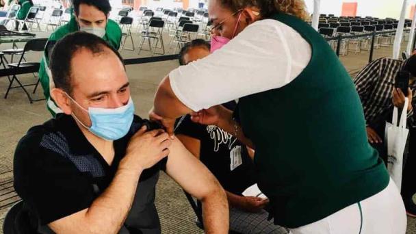 El secretario de Hacienda y Crédito Público, Arturo Herrera Gutiérrez, recibió este viernes la vacuna contra el COVID-19 en un módulo de la Ciudad de México.