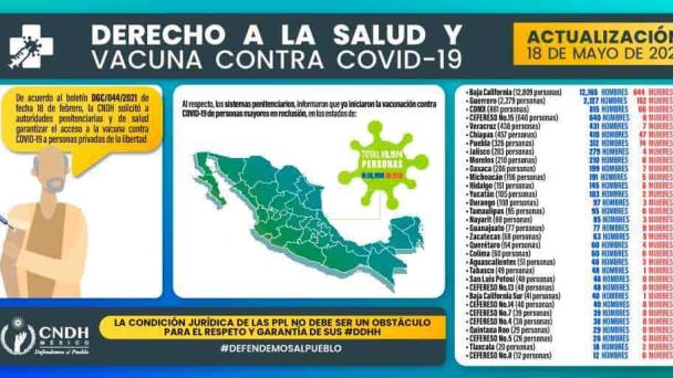 La Comisión Nacional de los Derechos Humanos (CNDH) solicitó al Consejo de Salubridad, a la Secretaría de Salud y al Gobierno de México, que se garantice la vacunación contra el COVID-19 en los centros penitenciarios federales, estatales y militares del país.