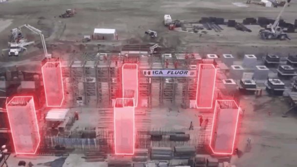 “En el área de almacenamiento correspondiente al paquete 5, se tiene concluida la construcción de las cimentaciones profundas de 35 tanques verticales con inclusiones y 21 esferas de almacenamiento en pilas, de los cuales se trabaja ocho en excavaciones y retiro de material, tres en proceso de relleno interior de anillo, 10 en armado de acero y colocación de cimbra, y siete en la formación de capa de reparto”, señaló una voz en off.