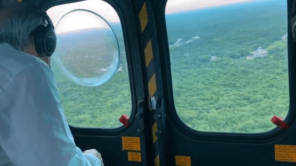 López Obrador detalló que el viernes llegó a Tabasco y de ahí viajó a Palenque, donde abordó el helicóptero de la Fuerza Aérea Mexicana en el que realizaría el recorrido; posteriormente hizo una parada en Tenosique, donde se encontró con el gobernador Carlos Manuel Merino Campos y el empresario Carlos Slim.