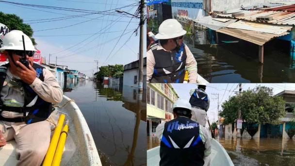 De igual forma, recordó que para atender la contingencia se han desplegado 150 trabajadores electricistas, así como 55 vehículos pickup, 14 grúas y 3 vehículos anfibios (Unimog), que permiten entrar a los puntos de difícil acceso por el nivel del agua.