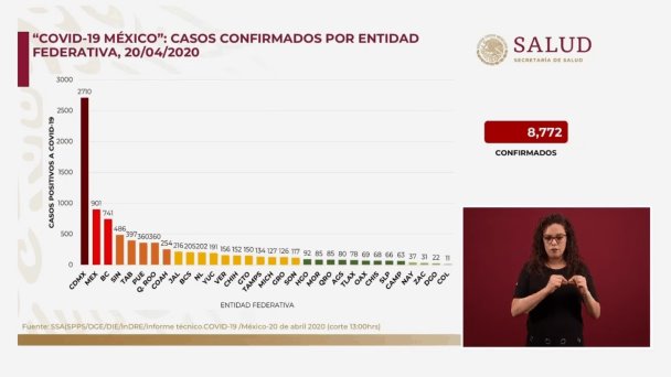 La Secretaría de Salud federal, informó que en México hay un total de 8 mil 772 casos confirmados de Covid-19, y que Tabasco se ubica dentro de los primeros cinco estados en la República con el mayor número de contagiados.