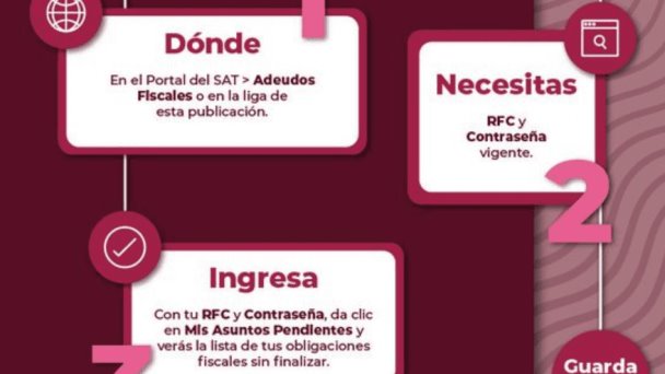 El Servicio de Administración Tributaria (SAT) implementó un mecanismo para que personas físicas o morales puedan consultar, en tanto solo tres pasos, si tienen algún adeudo fiscal.