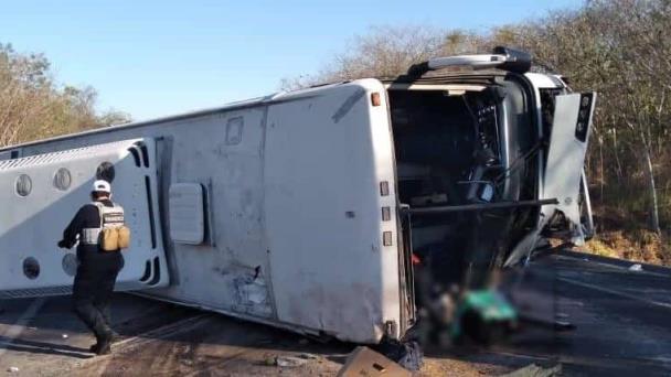 La unidad provenía de Tapachula, Chiapas con destino a Tijuana, sin embargo, de acuerdo a información preliminar, a la altura del municipio de Rosamorada, el chofer perdió el control del vehículo el cual terminó volcándose sobre la carretera.
