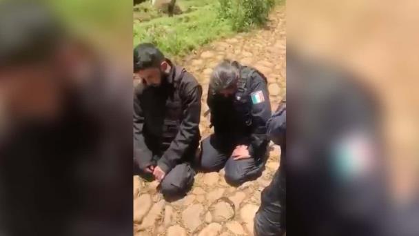 Los uniformados, dos hombres y dos mujeres, fueron interrogados por los presuntos delincuentes, y a uno de ellos le preguntan “los nombres de los directores que apoyan a los cuatro letras”, en referencia al Cártel Jalisco Nueva Generación (CJNG).