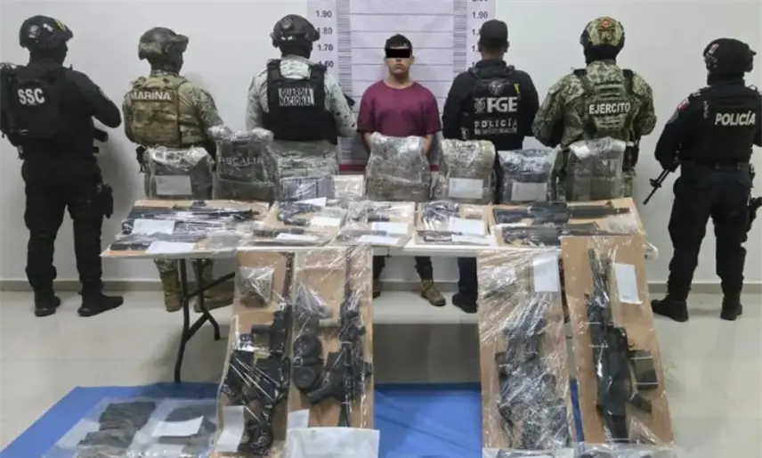 Las autoridades también decomisaron: seis armas calibre 0.223 mm, un calibre 7.62, una AK – 47 conocida como "cuerno de chivo"; cuatro cortas 0.9 mm, granadas de fragmentación, cargadores abastecidos, ponchallantas, así como chalecos y accesorios tácticos, además de dos vehículos, relacionados con diversos secuestros.