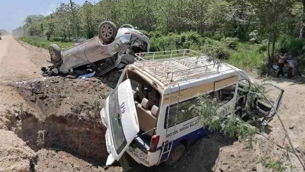 De acuerdo a los reportes, el percance se suscitó a la altura de la vía 30 hacia villa El Triunfo, cuando la unidad de transporte de pasajeros con el número económico 09 y el automóvil particular se impactaron, quedando ambos vehículos volcados a orillas de la carretera.
