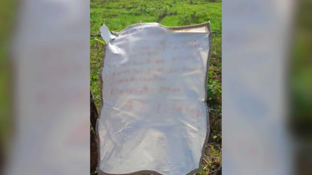 El hallazgo fue realizado en la ranchería Encrucijada, tercera sección, de Cárdenas. De acuerdo a la versión de los pobladores, la manta se encontró en un camino que lleva a unos potreros, sobre un alambrado de púas.