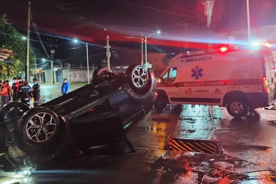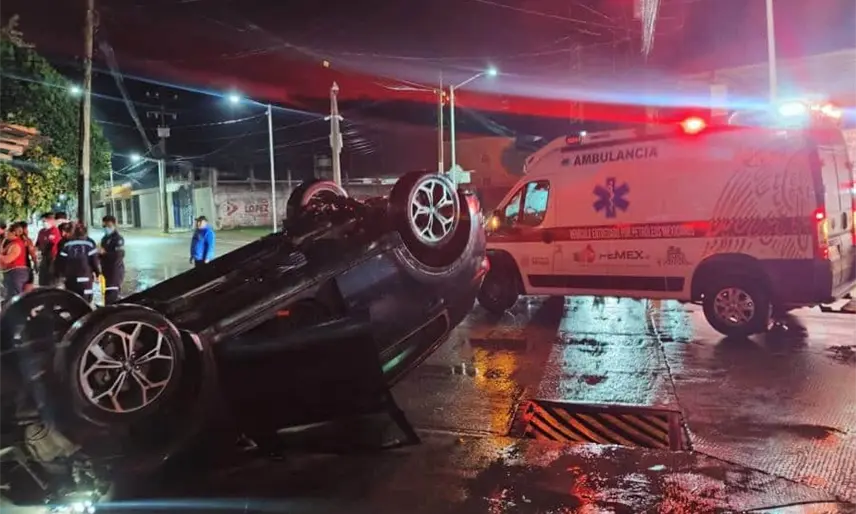 Dos personas resultaron lesionadas tras la volcadura de un vehículo en Macuspana.