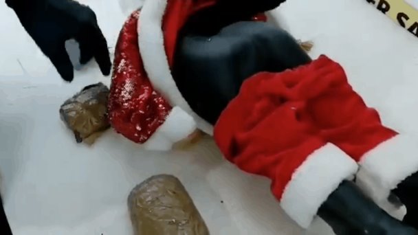 En tanto que en el segundo paquete que correspondía a una figura de Santa Claus, se localizó un envoltorio con 310 gramos de aparente metanfetamina.