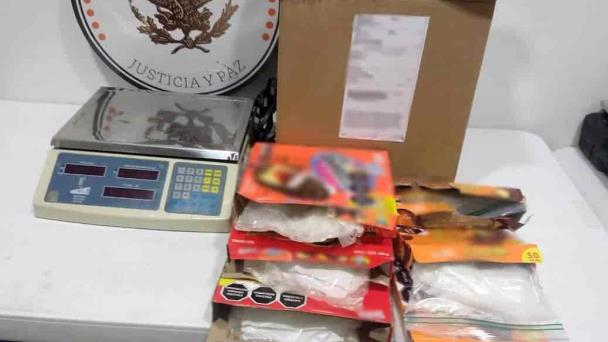 La Guardia Nacional aseguró tres kilos de crystal que se encontraban ocultos en empaques de pastelitos, dulces y chocolate en polvo, que pretendían ser enviados de la Ciudad de México a Carolina del Norte, Estados Unidos.
