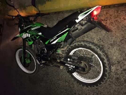 La otra unidad asegurada fue una motocicleta marca Italika, color negro con verde.