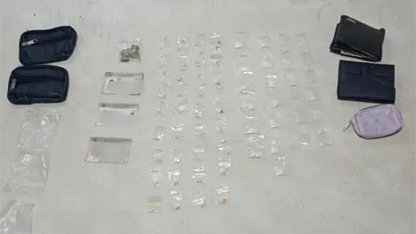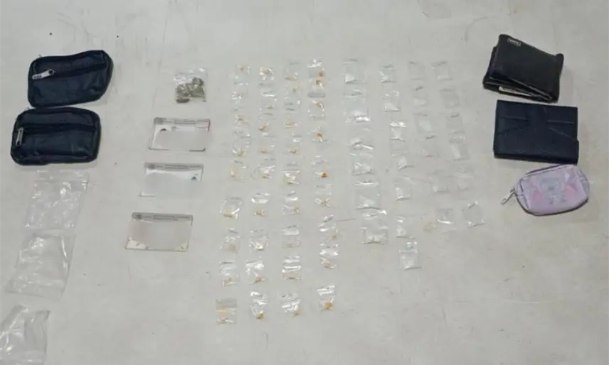 A los detenidos se les aseguró un conjunto de dosis de sustancias ilícitas, consistentes en bolsitas con metanfetamina conocida como cristal, así como dosis de las drogas conocidas como "reina" y "piedra", además de dinero en efectivo, carteras y monederos.
