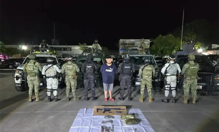El grupo de reacción táctica conocido como Los Tiburones logró el aseguramiento de "El Balú", un objetivo prioritario identificado como presunto jefe de plaza del grupo criminal "La Barredora".