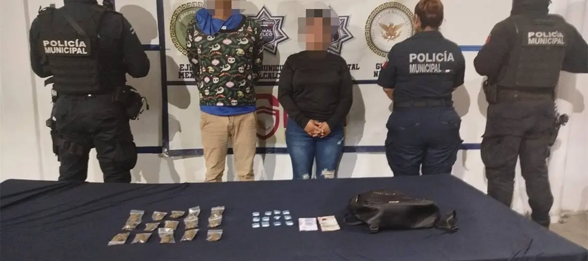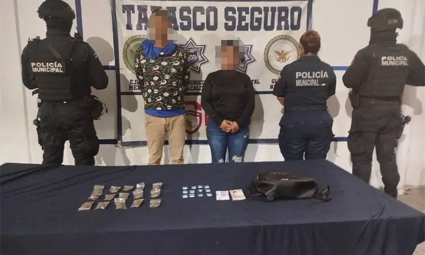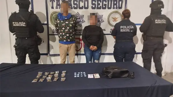 Una pareja fue detenida por elementos de la Dirección de Seguridad Pública Municipal de Comalcalco, por el delito de posesión de drogas con fines de narcomenudeo.