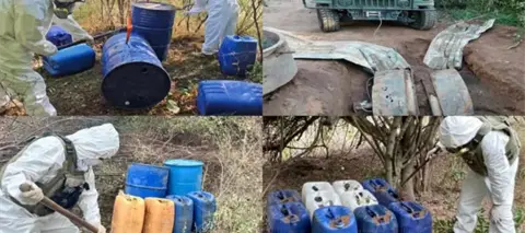 Ejército decomisó 4 reactores metálicos, tres mil 105 litros de acetona, 5 mil 550 de una sustancia desconocida