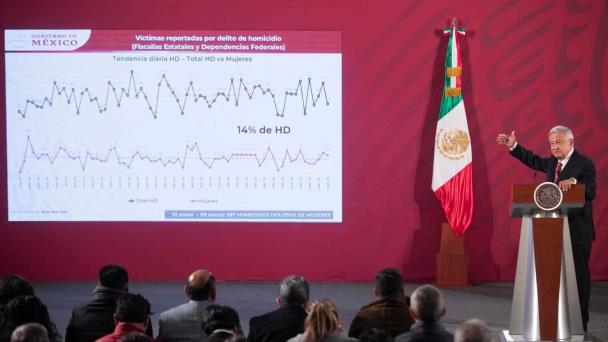 “Que no hubo violencia. Ayer fue un día sin violencia, inclusive hasta en lo que tiene que ver con la violencia en general que desgraciadamente padecemos, ayer bajó en el país el número de homicidios y de otros delitos, eso sí lo tengo, eso sí se los puedo decir. Ayer, si ponemos, fueron como 75 homicidios, el promedio es más alto, por cierto, ya vamos a informar. 72 y en dos estados no hubo homicidio. - ¿Cuántas mujeres murieron el 8 de marzo? - No tengo el… A ver, sí, aquí está: 11 y 10 ayer. Esto lo llevamos diario. Aclarando, estamos hablando de mujeres en general”, informó.