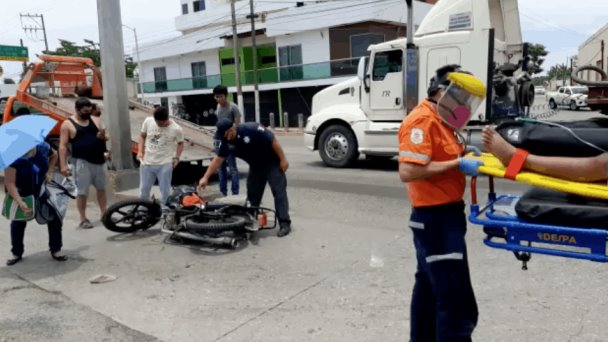 Un motociclista fue arrollado en el periférico a la altura de la colonia Tamulté; personal del Sistema Estatal de Urgencias le brindó los primeros auxilios y lo trasladó a un hospital.