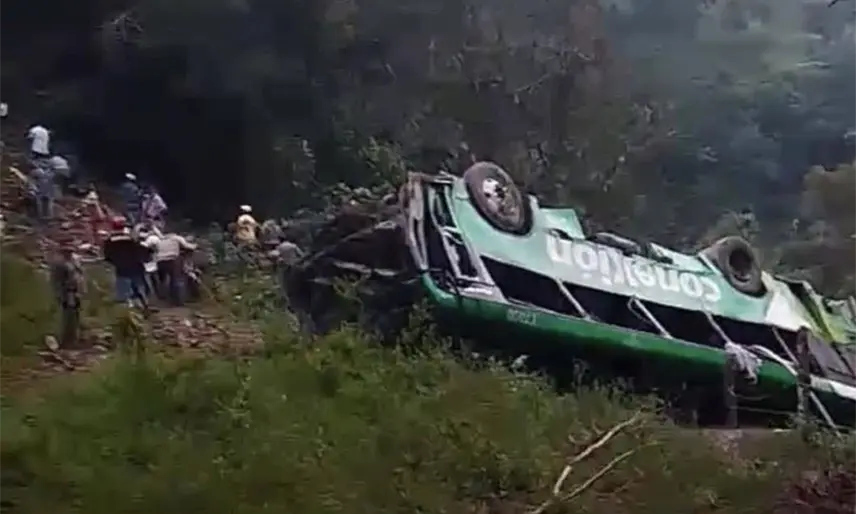 La caída de un autobús de pasajeros a una cañada en el municipio de Zontecomatlán, al norte de Veracruz dejó al menos 10 muertos y 32 lesionados en vísperas de Navidad.