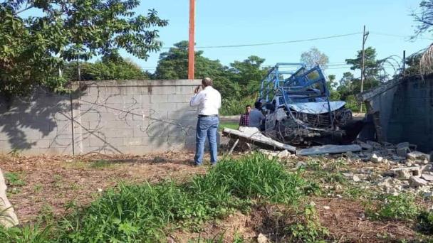 Una camioneta colisionó contra la barda perimetral del centro administrativo de Pemex, dejando únicamente daños materiales.