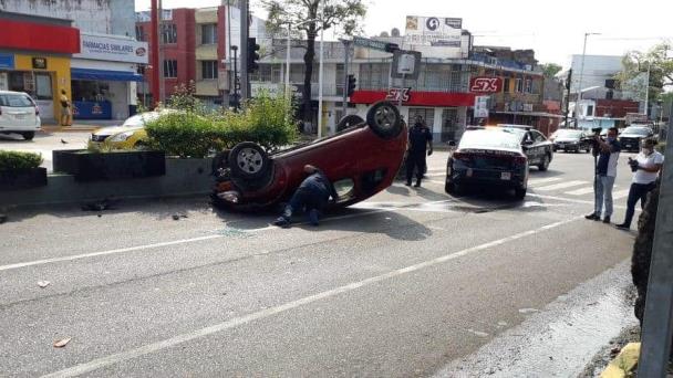 El chofer del auto que se volcó ayer en la avenida Paseo Tabasco, declaró ante las autoridades que evitó chocar con otro vehículo, por lo que terminó impactándose contras las jardineras.