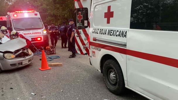 Personal de la Cruz Roja delegación Tabasco arribó a la zona del incidente para proporcionar el apoyo con las llamadas ‘quijadas de la vida’, para cortar el metal retorcido que impedía la salida del accidentado de su vehículo.