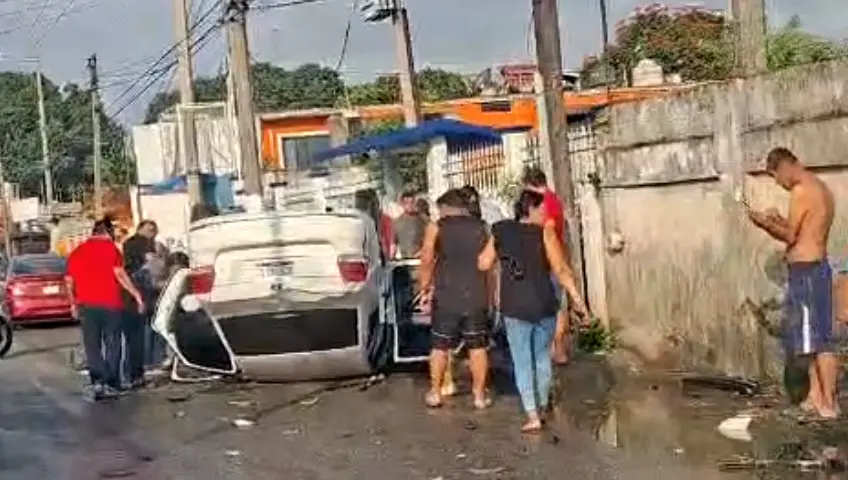 Coche termina con las llantas arriba tras accidente en la Villahermosa-La Isla