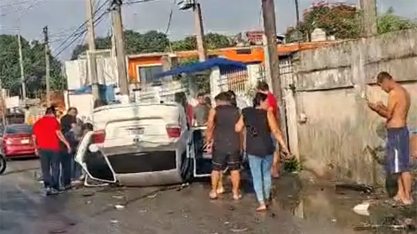 Vecinos se acercaron a auxiliar al conductor del auto compacto y llamaron a los servicios de emergencia.