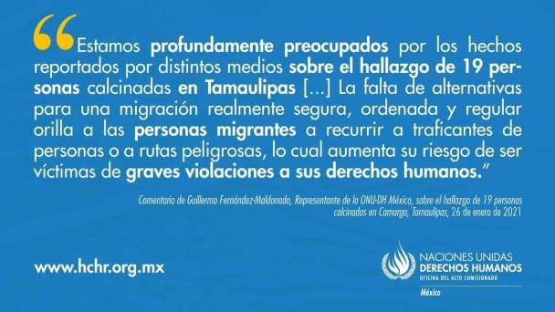 Guillermo Fernández Maldonado, representante de la ONU-DH México, manifestó que están profundamente preocupados por este hecho, pues de acuerdo con la información recibida, al menos varias de las víctimas serían guatemaltecas.