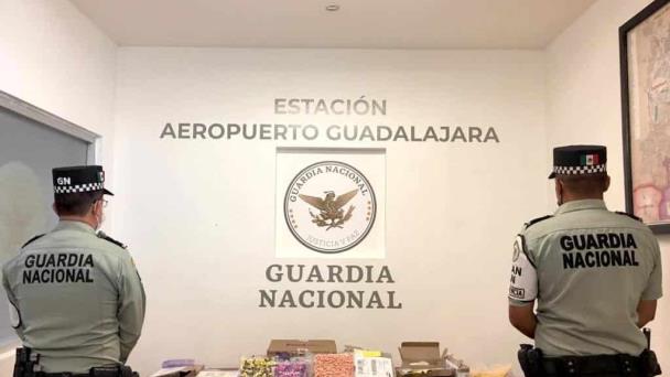 La Guardia Nacional decomisó 3 mil 953 pastillas de aparente metanfetamina y un kilo de extracto de marihuana en una empresa de paquetería de Guadalajara, que tenían como destino Chihuahua, Guanajuato y la Ciudad de México.